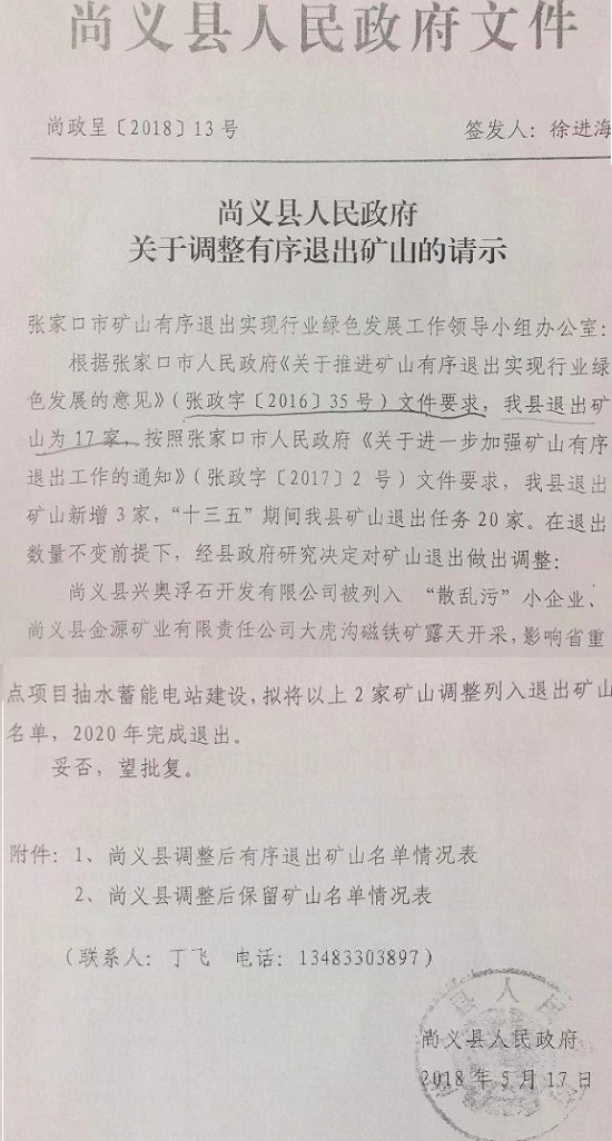 张家口尚义县招商引资企业遭遇非法关闭损失上亿 特约记者 李海波 合法的采矿手续在河北省张家口市尚义县却因地方相关部门的一纸退出文件而不能正常生产经营,而值得玩味的是,就在今年5月河北省自然资源厅该企业却是在整改之列,但并非关闭铁矿。 此事让河北省张家口尚义县金源矿业有限责任公司(以下简称金源矿业)的负责人提出质疑。 合法的开矿手续被关闭 金源矿业于2006年8月10日在尚义县工商局注册,是由尚义县人民政府招商引资成立的。2008年7月23日经矿业协会,尚义县小蒜沟镇政府、尚义县安监局、国土局、环保局、水务局、“挖山造田,以绿还绿”试点工程领导小组批准同意的并获得铁矿选场试恢复生产批准通知。 2013年8月,金源矿业通过招拍挂取得了大虎沟采矿权,2013年9月5日与省国土资源厅签订《采矿权出让合同》,之后按约定,向省财政厅分5次缴纳了采矿权价款1755万元。金源矿业于2014年通过了省环境保护厅环评,2015年4月30号正式取得了采矿证,2017年11月20日获得安全生产许可证,露天开采14年,地下开采13年。 金源矿业由此取得了全套合法采矿手续,照说可以依法采矿经营了。 公司法人陈军称,自2015年取得采矿证之后,尚义县政府并没有让自己正常生产经营,直至2018年5月,张家口市国土资源局金源矿业大虎沟铁矿列为关闭矿山名单中。其理由是影响省重点项目抽水蓄能电站的建设。 资料显示,抽水蓄能电站从2016年开始筹办建设,并未经金源矿业同意的情况下对尚义金源所在矿区进行勘探地质地貌等工作。 而在此之前金源矿业早已将各种手续审批完毕。 据2018年5月17日,尚义县政府向张家口市矿山退出办上报的文件显示,大虎沟铁矿之所以被列入退出的名单里,理由是大虎沟磁铁矿露天采矿,影响省重点项目抽水蓄能电站建设,2018年5月30日张家口矿山有序退出实现行业绿色发展工作领导小组对该文件进行了批复,同意对金源矿业大虎沟磁铁矿由原计划保留矿山调整为2020年退出。 由此,尚义县政府对金源矿业提出了退出,并让河北省四合百城资产评估公司对金源矿业大虎沟磁铁矿进行评估,评估的价值是8769万元。在评估后,就再无下文,赔偿一事由此搁置,却多次提出让金源矿业进行自行拆除。 于是金源矿业在2020年10月30日请了北京中评正信资产评估有限公司对金源矿业资产进行了评估,大虎沟磁铁矿评估的价值是9938万元。 金源矿业相关负责人称,此评估仅仅是个人投资的资产评估,而并未包括生产经营的期望收益。 2020年5月29日,河北省自然资源厅在网上公布了一份关于矿山退出综合治理的一份文件,金源矿业大虎沟磁铁矿被列为整改之列。 专家释法 针对此事,中国行政法学研究会副会长、北京大学法学院姜明安教授认为,公司的行为是合法的,政府要关必须要有理由。如果是涉及到公共利益公司需作出让步,政府方面要作出补偿,损失多少,补偿多少。 姜明安进一步解释到,如果按照法律要关闭矿,必须告知。关闭前必须说明理由,为什么要关,不是文件说明理由,要当面说明理由,必要的时候,还要开听证会。还要听取你的申辩,告知,这是正当法律程序。 北京物权法学会理事、首都经贸大学民商法教授翟业虎针对该案指出,采矿权属于《物权法》上的用益物权,用益物权也是法定物权,法定物权不能随意侵犯。对依法取得的采矿权应受法律保护。无论从《民法通则》、《物权法》还是在5月28号颁布的《民法典》都作出了明确的规定。 翟业虎说,如果因为是露天开采而被关停,理由有些牵强。该公司除了审批有露天开采还有13年的地下开采年限。如果政府认为露天开采影响其他项目,是不是可以转移到地下采?14年的露天采、13年地下采,是不是这种采矿方式的改变也可以兼顾到水利工程得到顺利实施,采矿权跟所谓的绿水青山的工程根本就不会造成任何妨碍,实体上的公共利益原则是不成立的。 谈到赔偿,翟业虎认为,直接损失,应该充分的予以赔偿。还要从《合同法》的角度,赔偿可得利益的损失。开采多少年,可以获得多少利润,也必须要给补偿。 北京大学法学院湛中乐教授指出,该案中金源矿业应对政府的文件提起复议或者诉讼。无论从财产权,还是按照行政许可法、物权法,还有马上要实施的《民法典》,都对用益物权财产权提供了有力的法律保障。 中国人民大学土地政策与制度研究中心副主任吴春歧教授针对该案指出:法律把采矿权纳入了《物权法》123条,采矿权实际上是一个行政许可加后面的财产权,给了采矿权证,是一种行政许可,不能因为吊销采矿权证,财产权也莫名其妙没了。 针对该案,北京京润律师事务所主任张志同认为,因为水电站的名义要求腾退,这个理由能不能成立?首先这是不是公共利益,这个水电站是为公众服务的,但是未必就是公共利益。退一步讲即便是公共利益,是不是必须要征收,条例规定的很清楚,公共利益加必须性。 企业通过招商引资,通过招拍挂和河北省自然资源厅签订了一个采矿权出让合同,现在协议无法履行,合同目的不能实现,不是自然资源厅不履行,而是县政府或者哪个部门造成合同没法履行,或者他的违法行为造成了损失,涉及到行政诉讼和行政赔偿。县政府没有任何说法,就直接给关停的做法在法律上肯定是站不住脚的。 金源矿业采矿的一系列手续都要比水电站手续早。矿业权益在先,要
