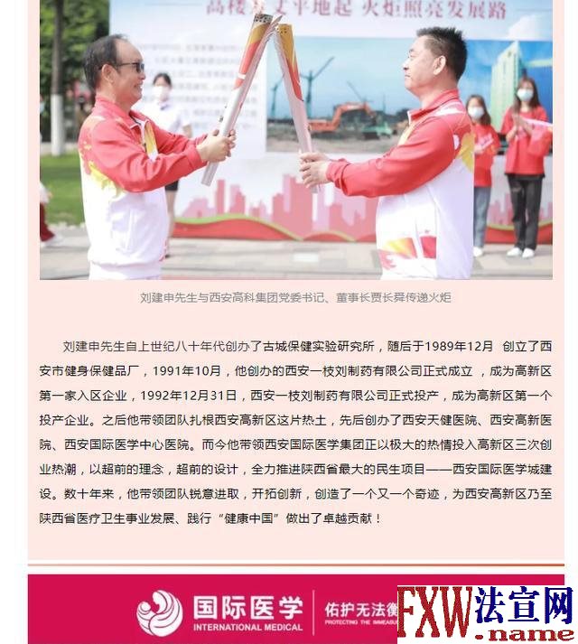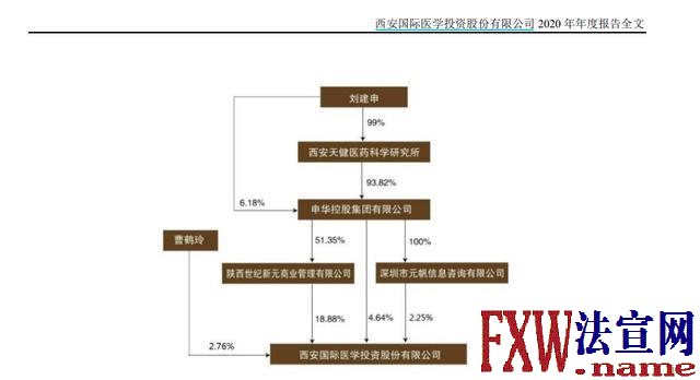 西安高新医院拒收孕妇事件持续发酵。1 月 6 日,国际医学股价的大幅下跌,甚至带动了 A 股民营医院概念股的整体下滑。数据显示,截至午间 11 点 30 分,国际医学股价报 9.85 元 / 股,对应跌幅 8.8%。午盘后国际医学股价有所回升,最终以 10.28 元 / 股收盘,跌幅 4.81%。 西安高新医院为上市公司国际医学旗下的医院之一,早在 2002 年就已经开诊,是中国首家社会办医三甲医院。根据国际医学官网介绍,建院至 2017 年 6 月期间,西安高新医院的年门诊量近 80 万人次,年住院 3.8 万人次、年手术 1.9 万人次。 国际医学的背后离不开一个神秘的男人:实际控制人刘建申。他曾经以一己之力收购 " 陕西第一股 " 陕解放 A,又将这家上市公司变为纯医疗服务企业的国际医学,现又正在建整容医院,最高总市值超过 480 亿。 拒收产妇背后:西安高新医院被定为产妇分娩的省级定点医院 "12 月 30 日,陕西省新冠肺炎疫情防控领导小组指定——增设西安高新医院为近期隔离管控人员消化道出血、心外手术、产妇分娩的省级定点收治医院。" 这是 1 月 4 日,国际医学官方账号发布的文章《西安高新医院定点收治病区及门急诊 24 小时不停诊,全力保障患者看病无忧!》中所介绍信息,国际医学旗下的西安高新医院、西安国际医学中心医院均在风险人员省级定点医院名单之中。 国际医学官方微信账号中介绍的定点医院情况。 记者注意到,在公告中均备注 " 只接受电话预约的患者 ",所要求的 " 所有就诊患者需提供 24 小时内核酸检测阴性结果 " 后提示 " 实效以各医院防控要求为准 "。 记者注意到,12 月 20 日的 " 西安国际医学中心北区 " 也曾发布信息称," 西安国际医学中心医院门急诊就诊人数激增,请来院患者持 48 小时核酸、身份证、行程码入院。" 国际医学官方微信账号上 11 月 1 日所推送的文章图片截图。 1 月 1 日,国际医学还宣布,针对孕产妇、老弱病残等特殊群体将投入 100 辆救护运转车免费接送患者。 1 月 6 日," 西安发布 " 发布消息称,近日西安高新医院发生一起孕产妇流产事件引起社会广泛关注,造成恶劣社会影响。1 月 5 日,经陕西省、西安市卫生健康委组织专家进行调查,认定该事件是一起责任事故。据悉,西安高新医院已对相关责任人作出处理:总经理范郁会被停职,门诊部、医务部相关责任人被免职。 据西安新闻网消息,1 月 6 日下午,西安市政府召开西安市新冠肺炎疫情防控工作新闻发布会 ( 第 48 场 ) 。会上,西安市卫生健康委主任刘顺智代表西安市卫健委就西安高新区孕妇流产责任事故道歉。 老板 " 一枝刘 ":八十年代做保健品发家 2002 年创立西安高新医院 国际医学目前的第一大股东为陕西世纪新元商业管理有限公司(以下简称:陕西世纪新元),该公司持有国际医学 29.74% 的股权,是国际医学的控股股东。 解析陕西世纪新元的股权结构看,这家公司的实际控制人为刘建申。资料显示,陕西世纪新元有三名股东,长安国际信托股份有限公司、申华控股集团有限公司、西安银凯医疗管理有限公司分别持股 35.0004%、33.3773%、31.6223%。其中,申华控股集团对西安银凯医疗有 100% 的实际控制权。这意味着,申华控股集团对陕西世纪新元的最终受益股份接近 65%,申华控股集团为刘建申控股企业。 国际医学 2020 年年度报告中介绍的实际控制人刘建申持股情况。 值得一提的是,虽然是国际医学的最终控制人,但刘建申鲜少出现在国际医学的经营资料中。目前国际医学的现任高管中,也并没有刘建申的身影。然而就是这个看起来销声匿迹的人,却是西北的资本大鳄。 根据国际医学此前公告,刘建申 1956 年 12 月出生,博士学历,曾经任西安天健医院董事长、西安高新医院有限公司执行委员会主席、申华风险投资集团投资委员会主席。此外,刘建申还任职陕西省总商会副会长多年。 刘建申早年由保健品创业起家。2021 年 5 月 19 日,国际医学官方微信账号中的一篇《第一棒火炬手——国际医学实际控制人刘建申先生参加国家高新区火炬 " 云 " 传递启动仪式》文章中介绍刘建申早年的创业经历。 " 刘建申先生自上世纪八十年代创办了古城保健实验研究所,随后于 1989 年 12 月 创立了西安市健身保健品厂,1991 年 10 月,他创办的西安一枝刘制药有限公司正式成立 ,成为高新区第一家入区企业,1992 年 12 月 31 日,西安一枝刘制药有限公司正式投产,成为高新区第一个投产企业。" 国际医学官方微信账号内的文章。 2002 年,46 岁的刘建申开始创办医院,西安高新医院也就是在这一年开院。2003 年,刘建申又注册成立西安天健医院,自己担任董事长。目前天健医院已经注销,仅保留了西安天健医药科学研究所。 拿下 " 陕西第一股 " 陕解放 A 持续扩张医院版图 刘建申的财富之路上,建两家医院是远远不够的,深谙资本运作的他,2002 年之前就开始为西安高新医院的上市做打算。 当时 A 股市场上有一只名为 " 陕解放 A" 的上市公司,这家公司前身是西安市解放百货商场,始建于 1956 年。1993 年," 陕解放 A" 正式在深交所挂牌,是陕西省第一家上市的公司。 百货起家的 " 陕解放 A" 在早年间建设了多个本地人十分熟悉的商场,比如 1996 年开业的开元商城购物中心、2001 年开业的西安开元商城二期。在这期间," 陕解放 A" 的第一大股东一直为西安市国有资产管理局。 2002 年 5 月,西安高新医院突然以协议受让的方式,成