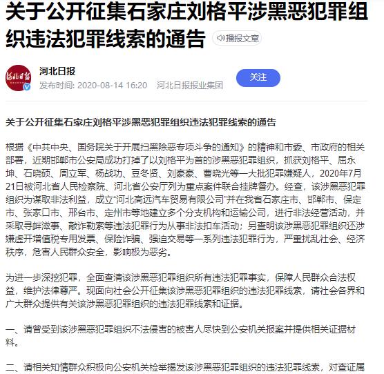 法学专家为河北高远公司刘格平案感到悲愤: 枉顾事实和法律,全部不具备涉黑四个特征 撰文 胡盼 设立高远公司从事汽车销售业务 2010年,刘格平使用其亲属身份,在石家庄市注册成立了“河北高远汽车贸易有限公司”(简称“高远公司”)从事汽车销售业务等生产经营活动。高远公司按照客户需求向半挂汽车销售商全款购买挂车,再将挂车销售给客户,客户向高远公司支付不高于车价款30%价金。客户再按照高远公司的推荐,以个人名义向高远公司合作银行等金融机构贷款,授信额度为车价款70%,贷款金融机构直接将授信借款支付给高远公司。高远公司为客户贷款提供连带保证责任,向合作银行等金融机构交纳总贷款额10%的保证金,并以车辆作为抵押担保,客户逾期还款影响高远公司新客户授信。客户与高远公司签订“保留所有权”买卖合同,客户还清银行贷款前车辆所有权归高远公司所有。若客户不能按贷款合同约定按期还款,高远公司有权收回车辆,客户需支付5000—10000元取回车辆费用。为了保障挂车出险后获得足额的保险理赔,合同约定车辆保险必须通过高远公司购买,若违约客户应承担5000元保险违约罚金。 为了扩大公司经营及公司所有的运营挂车数量增多,一旦出现客户违约、车辆违章等情况,不但影响行政机关业务审批,也影响公司融资贷款等。故高远公司在河北多地及山西部分地区设立关联公司。高远公司在多地以此模式销售万余辆挂车,对社会经济的发展起到了重要的促进作用。 违约客户控告为黑社会被判刑 因部分客户违约,高远公司对违约客户依据合同约定采取维权措施,即高远公司实施了取回车辆及收取扣车款、保险金罚金的行为。一万辆车,只有90个车主因为他没有按时还款,导致和公司发生纠纷。 而对违约客户在实施前述行为时,没有殴打及轻伤以上结果。唯一的一起轻微伤还是被害人不通过正当途径解决问题,组织人员、携带器具,利用车辆等围困高远公司定州4S店4日,期间刘格平让高远公司员工多次报警,警察多次出警均无果。第4日高远公司试图挪动堵门车辆时,双方发生肢体冲突致一人轻微伤,事后经公安机关处理高远公司赔偿对方35万元。 因违约客户刑事控告高远公司涉嫌套路贷、是黑恶组织,公安机关先将案件定性为黑社会性质组织再进行刑事侦查。最终司法机关将取回车辆的行为认定构成寻衅滋事罪,将收取扣车款、保险金罚金认定构成敲诈勒索罪,将一起上门收取欠款且没有造成严重后果的行为认定构成侵入住宅罪。最终被认定“黑社会性质组织”犯有寻衅滋事34起、敲诈勒索57起、侵入住宅罪1起,不足高远公司总业务量的0.92%,即违约客户占比不足总业务量的0.92%。 武安市公安局扫黑办、邯郸市公安局2020年8月14日发布的通告 河北省武安市人民法院下达约800页的(2021)冀0481刑初259号刑事判决书,刘格平等40余名被告人判刑。其中刘格平犯组织、领导黑社会性质组织罪、寻衅滋事罪、敲诈勒索罪、非法侵入住宅罪、虚开增值税专用发票罪、虚开发票罪、妨害作证罪、保险诈骗罪被判处有期徒刑25年,剥夺政治权利5年,并处没收个人全部财产。 刘格平不服判决,向邯郸市中级人民法院提起了上诉。其认为一审认定事实错误、定性错误、程序错误请求二审法院依法改判。 法学专家:刘格平案枉顾事实和法律,全部不具备涉黑四个特征,是个冤案 来自中国政法大学、北京大学法学院、中国人民大学法学院、北京外国语大学法学院、北京师范大学刑事法律科学研究院、首都经贸大学的教授对此案进行了探讨关注。专家们一致认为刘格平案的案子,真的可以用悲愤来形容。在事实和证据上有比较大的硬伤,所谓黑社会组织犯罪根本不成立,黑社会组织犯罪的“四个特征”都不具备,存在定性错误,纯粹是一个冤案。 第一.组织性:该案把公司法人的组织架构直接等同于黑社会的组织架构,但公司没有组织怎么来进行生产和经营呢?要看公司到底是为了犯罪的目的而成立的还是为了生产经营的目的而成立的?高远公司当时办理半挂车业务的时候就是为了获取经济利益,不是非法经营,高远公司发的文件、风控管理的制度和措施、薪酬考核办法,还有设立稽查部的通知、包括任命的通知,所有的文件都是和公司的主营业务有关,没有所谓犯罪组织的班规纪律,都是公司的组织纪律,这显然与组织性是不符合的。 第二.经济性:所谓的经济特征,以黑养黑的现象不存在,高远公司是正规的经营、正常的盈利,刘格平设立九十家公司的程序都是合法的,经营模式应当是合法的。不能说所有的获利都是非法获利,极少部分即便是构成了违法,也通过合法合理的途径都已经解决了。把公司过去二十年所有的经济活动都定性为涉黑犯,这样做不合法。高远公司主要是销售半挂车,半挂车很贵,可能一个人买不起,刘格平既然能卖出一万辆,说明对很多运输人员来说,这个行为是有利的,双方都有合同,合同也不违法。 第三.行为性:要有明显的暴力性特征,最高检当时给全国公诉人培训的时候讲到暴力性是涉黑案件突出的特点,原则上要求必须要有轻伤以上。但是刘格平案件里面一起轻伤都没有,暴力性在本案中非常不突出。虽然公司在催收账款的过程中会有一些暴力,但是他的目的不是为了违法犯罪,而是为了维护债权。对方合同违约了,公司找不着人,找到