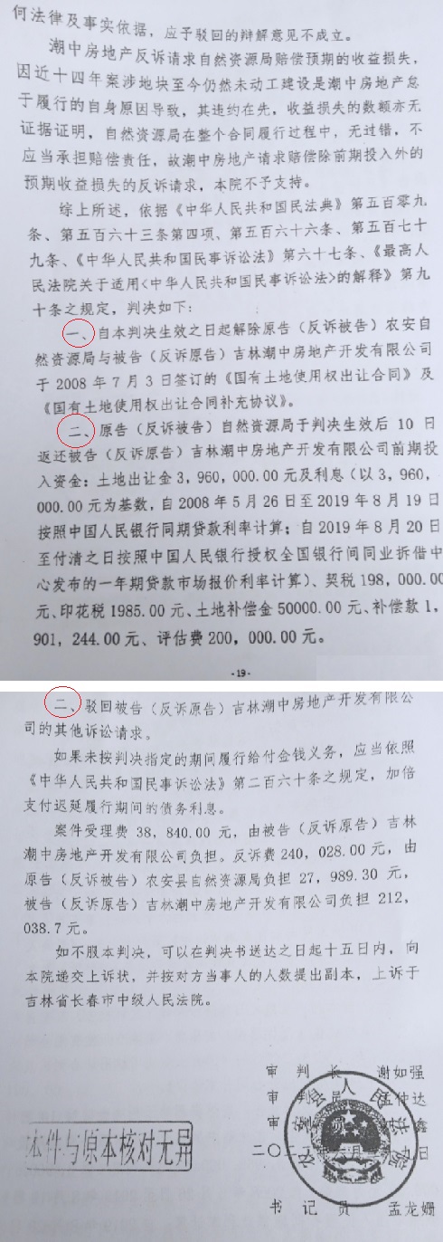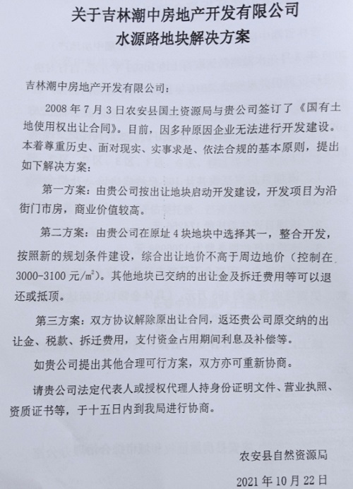 吉林农安县一土地受让14年被判解除合同,法学专家:缺乏法律依据 撰文 李海波 吉林潮中房地产有限公司成立于2007年,是经农安县政府招商引资过来的。2008年公司竞拍了农安县一地块,由于奥运无法办理拆迁许可证,之后多种因素造成至今无法拆迁。自然资源局和公司协商解决无效起诉至法院判决解除合同,但不予赔偿损失。潮中公司认为有失公允,多位法学专家均认为于法无据,解除权也远远超过除斥期。 受让土地后一直无法拆迁 沟通失败分道扬镳 2008年5月22号,在原农安县国土资源局举办的国有土地挂牌出让中,吉林潮中房地产公司竞得宗地编号为2008006的地块国有建设用地使用权,成交总价是396万元。双方签订了《成交确认书》,约定:本宗地采用毛地挂牌方式出让,竞得人必须严格遵照法律法规规定的标准对本宗地范围内的土地使用权和地上建筑物给予补偿,受让人在缴清土地使用权出让金并按照规定完成拆迁补偿安置工作以后方可申请办理土地登记,取得土地使用权。农安县公证处出具了公证书。此后,潮中房地产有限公司缴纳了土地出让金和税金。双方于7月3日签订了《国有土地使用权出让合同》和补充协议,约定受让人他同意在2008年7月3日动工建设,同意在2010年7月3日以前完成项目总体建设,并申请竣工验收。同时约定:超过合同约定的动工开发日期满一年未动工开发的,出让人可以向受让人征收土地出让金20%以下的土地闲置费;满2年未动工开发的,出让人可以无偿收回土地使用权,但不可抗力或政府、政府有关部门的行为或者动工开发必需的前期工作造成动工开发迟延的除外。 为准备拆迁,潮中房地产早在2008年2月25日就向农安镇北关村委会预交了5万元土地补偿金。潮中公司称2008奥运会奥运会全国各地都要维稳,不能出现因为拆迁导致的群众敏感事件,农安县政府出于维稳没有颁发许可证,虽然在8月份办理了项目选址、规划等手续,但潮中公司当年无法进行拆迁工作。 ![]() 2008年8月6日办理选址意见书申请审批表 而2009年当时的政策进行了调整,仅限于公用事业才给民营企业颁发拆迁许可证。潮中公司项目不属于公用事业,当然就不在颁发的范围之内。2009年10月时任农安县土地局姚局长与潮中公司当面协商探讨如何解决拆迁的问题,后来县政府也开会研究,决定以拓宽道路和巷道的方式对房屋进行拆迁,并由农安县市政工程管理所制作了水源道路工程的农安县建设项目选址意见书申请审批表,审批表当时由农安县规划办公室负责人和规划局局长的签名,但是在送主管县长签字时却没有了下文,该方案被搁置。 ![]() 泓顺公司的拆迁许可证,农安县法院判决说没有资质 在4月12日还与吉林省泓顺房地产拆迁有限公司签订《委托拆迁合同书》,但政府没有解决拆迁许可的问题,拆迁工作从此陷入停滞的状态。潮中公司并没有如愿开工建设。 2013年县委书记周贺认为不能将拆迁问题留给企业,组织会议研究决定由政府负责拆迁。7月25日,潮中公司通过省信用社向农安县房屋征收经办中心缴纳了20万元的评估费用,中心出具了20万元的收据。潮中公司称农安县政府和有关部门至今未对该费用的使用情况做出说明,也没有出示相关评估报告。 2021年10月22日,农安县资源局给发来《关于房地产吉林潮中房地产开发有限公司水源路地块解决方案》。 2021年12月1日,农安县资源局向农安县法院提交了民事起诉状,要求解除双方于2008年7月3日签订的国有土地出让合同和补充协议。远在广东佛山的潮中公司法人于2022年1月9日才收到法院寄来的传票,通知公司在1月14日到农安县法院开庭,收到的材料里除了传票和起诉书,没有证据材料。如此短的时间,给潮中公司的应诉带来极为不利。 潮中公司认为本案在辖区内属于新类型且案情疑难复杂,由于该案是农安县委县政府决定的农安县法院不能公正审理,且农安县法院将该案作为简易程序处理,该案由长春市中级法院审理有利于公正审理,潮中公司于1月10日提起了《提级管辖申请书》和《管辖权异议申请书》,但均被驳回。 2022年1月14日公司员工到县政府和周县长及资源局局长面谈(该案承办法官谢如强也在现场),周县长要求深度沟通协商解决。1月21日,公司向农安县政府提交了《关于农安县水源路地块的解决方案》。 1月25日,农安县自然资源局对此方案做出答复: ![]() 1月29日,潮中公司对此答复农安县政府及自然资源局:第一、针对整体开发整块地块地价均在2150元/㎡的问题是在2013年周贺书记定下来的,且拆迁过程中可以招拍挂时的地价就是2150元/㎡。第二、关于原合同执行的方案,争议拆迁成本的计算问题都是口头说出,政府没有给出合理的准确的数据的正式文件,公司只能按照当时的评估价的2倍给出2800万元.三是联合开发,由政府牵头,公司可以与政府下属企业城投或是房产经营公司来合作开发。 2月10日,自然资源局对此回复:一、关于整体开发地价问题,按照2008年合同约定是毛地出让,公司提出的2013年地价均在2150元/㎡,当时我方没有收到任何信息,不能作为确定现在整体开发地价的依据;二、政府拆迁成本问题在多次协商中,我方已经提供了政府费用7196万元的拆迁合同和评估报告等证据并同意你方进行价格评估,不存在没有准确数据的情况;三是联合开发可以在整体开发综合地价3000-3100元/㎡的基础上,2月25日前与农安县