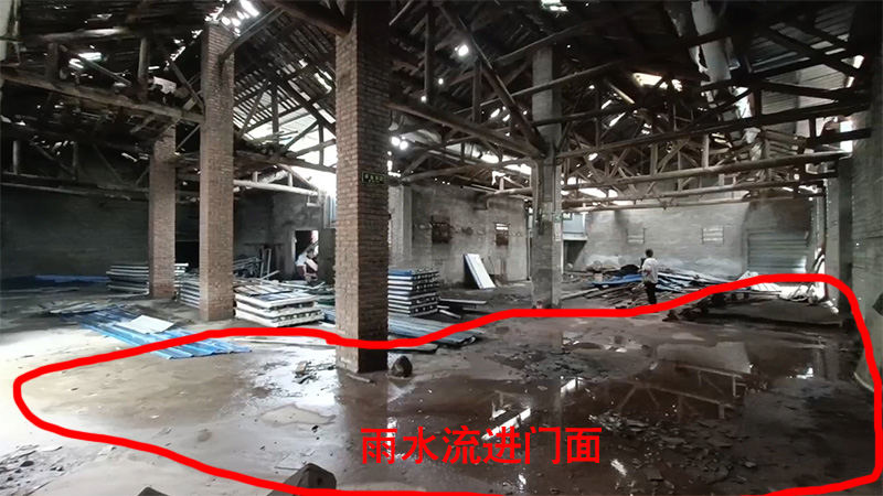 图为:申请恢复用电报告 2021年6月30日,隆昌市发展和改革局批复,同意内江市生活垃圾处理中心隆昌市双凤镇安置还房项目在隆昌市双凤镇上街修建,需要占用代宗良买的农资公司化肥仓库门面以外坝子搭建堆放材料的彩钢棚面积。 李国久称,镇政府通过多种方式找我,仅以90万元的价格作为征收化肥仓库、门面整体补偿,由于镇政府拿不出征地拆迁、安置补偿批复文件被拒后,就以违法建设彩钢棚为由,在一家老少不知情的情况之下进行了强拆。将强拆的材料破门而入堆放在门面里面,一片狼藉。 四个卷帘门损坏了不能使用,产权证确定的部分位置被挖开,石头滚入门面,雨水流进门面,公用通道(分摊面积)被毁车辆不能进出门面。距离不到两米位置,还修建了一个垃圾房。 图为:不能使用的四个卷帘门 图为:雨水流进门面