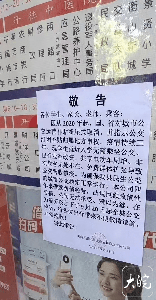 原标题:两地公交公司同日公告,全城公交将停运!主管部门回应! 又有城市公交车公司自称经营困难准备停运。 9月18日,湖南衡阳市衡山县嘉年华城市公共客运有限公司《敬告》称:本公司四年来借款负债经营,公司难以为继,将于20日起全城公交停运。 无独有偶,当天在湖南娄底,有网友称,双峰县和森城市公交车服务有限责任公司也发布了一份“被迫停运通告”。通告显示,双峰县城区公交车自2023年9月23日起暂时全部停运。 目前据媒体报道,衡山县交通运输局已回应称,已协商好,不会停运。双峰县交通运输局工作人员则表示正在处理。 “难以为继,全城公交停运” 9月18日,湖南衡山县一公交停运公告流传网络。该公告称因从2020年起,国、省对城市公交运营补贴断崖式取消,并指示公交纾困补贴归属地方事权。疫情持续三年、学生就近入学无需乘坐公交、出行业态改变、共享单车剧增、非法载客无处不在、免费群体扩张等诸多因素导致公交营收惨淡。 衡山县公交客运公司发布停运通知 来源:大皖新闻 公告称,为确保衡山县民生公益的城市公交稳定正常运行,衡山县嘉年华城市公共客运有限公司四年来借款负债经营,凸现巨额财政性亏损,公司难以为继,故于9月20日起全城公交停运。 企查查显示,衡山县嘉年华城市公共客运有限公司成立于2011年,是一家以从事道路运输业为主的企业,提供城市公共客运、校车服务、新能源汽车租赁及充电服务等,公司大股东为湖南欣鑫盛置业有限公司。 据海报新闻报道,目前,该公交公司及衡山县交通运输局均回应:双方已协商好,公交不会停运。 曾经,全部采用新能源汽车的衡山公交是领先衡阳全市的“榜样”。根据衡山县人民政府网站,2016年1月31日,衡山首批10辆新能源公交车投入运营。2016年7月,嘉年华公司又以每台近80万元的价格,购置了20台新能源纯电动公交车,并投入运营。2017年8月2日,嘉年华公司再次购置了10台新能源纯电动公交车投入运营。衡山县城区率先在衡阳市“七县五区”中实现新能源纯电动公交车“全覆盖”。2017年,有媒体曾报道,2016年以来,衡山县多渠道筹措资金,累计投资1800余万元,分三批共购置新能源公交车40台,新建充电桩15个,所有的燃油公交车都被替换成纯电动公交车。 然而,2022年12月31日,新能源汽车(含城市公交、道路客运等)购置补贴终止。 财政部一份对人大代表建议的回复显示,延续补贴已无可能。财政部称,经初步测算,在享受购置补贴的情况下,目前10米车型的纯电动公交车的购置成本比传统燃油车高25%左右;在运营环节,纯电动公交车每年的使用成本不到传统燃油车的一半。综合来看,纯电动公交车的总成本低于传统燃油车,已具有比较优势。财政部强调,城市公交属于地方财政事权,原则上由地方承担支出责任,中央财政补贴资金主要是引导和激励地方主动作为。对于城市公交运营中存在的困难,应坚持问题导向有针对性地解决。 嘉年华公司工作人员透露,目前该公司新能源公交的电池损耗较大,每天需要早晚各充一次电,“已经欠了不少员工工资,和政府协商的补贴什么时候能发下来还不知道。” 9月18日,在湖南娄底也出现类似事件。据大象新闻报道,有网友称,双峰县和森城市公交车服务有限责任公司发布了被迫停运通告。通告显示,双峰县城区公交车自2023年9月23日起暂时全部停运,具体恢复正常运行日期待县人民政府拨付相关补贴后,公司将通过微信、抖音等平台发布消息并张贴通告。 通告还显示,“受疫情和共享电动车等各方面原因,我县公交车经营收入呈塌方式减少,再加上将近四年未享受国家财政补贴。目前因巨额亏损,已无法支付公交车充电电费,无法支付驾驶员和管理人员工资等。” 对此,双峰县交通运输局工作人员表示,正在处理,具体措施还没下来,到时候会发通告。 企查查显示,双峰县和森城市公交车服务有限责任公司成立于2007年,25位股东均为自然人。 2017年,该公司32台新能源纯电动公交车投入运行,还曾被评为当地年度十大新闻之一。据掌上双峰报道称,2017年12月29日,双峰县32台新能源纯电动公交车正式投入营运。2017年和森城市公交公司筹资1000多万元从株洲动车集团购置了32台新能源电动公交车,替代2007年投入使用的20台燃油公交车,为市民提供便利、快捷、舒适、安全、优雅的出行环境。同时,劳动线路由3条增加到4条,停靠点由40多个增加到100多个,从总站出发拓展延伸至周边所有重点地点。 值得注意的是,就在最近,湖南省交通运输厅等六部门发布《关于落实14周岁以下儿童凭有效证件免费乘坐公交地铁工作的通知》。《通知》要求,所有市州、县市区确保9月底前政策执行到位。常规城市公交(不含定制公交、城际、城乡公交)、地铁执行14周岁以下儿童凭有效证件免费乘坐公交地铁政策。同时也要确保老年人、退役军人等优待群体免费乘坐公交地铁政策落实。 湖南上述《通知》要求,各地应将必要的公共交通发展资金纳入本级财政预算,有关资金向绩效评价结果好的公共交通企业倾斜。要以购买服务的方式实施成本规制,在科学界定城市公共交通运营补贴范围基础上,对公共交通企业进行合理补偿补贴,有条件的城市要建立补偿补贴款预拨制度。 城市公交运营困境频现 地方公交公司陷入困境的现象并不罕见。 今年2月23日上午,河南商丘市公共交通有限公司