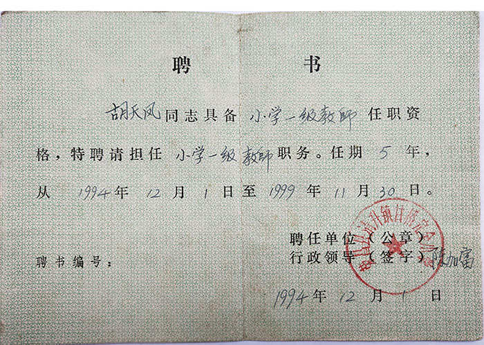 图:荣昌县教育局授予的专业技术资格证书 图:胡天凤担任甘桥完全小学教师的聘书 一个星期后,荣昌区政府、荣昌区政法委、荣昌区信访办、荣昌区人社局、荣昌区教委、清升镇政府、镇教办以及维稳办相关领导再次进行接访,政法委李副书记代表相关单位表态,要求胡天凤走法律程序,打赢官司政府不会少一分钱,如果不走司法程序,就没有这笔开支。并提出法律援助,指定或者由胡天凤自己找律师打官司,费用由政府出面解决。 胡天凤称,退休待遇问题,她2013年已向荣昌县法院提起民事诉讼。法院认为,胡天凤从事教育工作是受所在学校安排,服从学校的规章制度,与学校之间直接发生关系。荣昌县教委是依法成立的教育主管部门,负责组织、领导和管理全县教育事业的办事机构,其职责是包括管理、指导全县教育工作,管理教育系统机构编制、工资福利和人事调配等工作。胡天凤的工作不受县教委直接的安排和管理,与教委也没有隶属关系,双方不存在劳动关系,不是民事调整对象,不属于法院民事案件受理范围。 上诉至重庆市第五中级人民法院,被驳回起诉,维持原判。 胡天凤又向荣昌法院提起行政诉讼,法院又认为荣教人发【2001】102号通知系2001年10月15日作出,胡天凤于2014年8月21日向法院提起行政诉讼,其起诉超过法定期限且无正当理由,依法应当不予受理,并驳回了起诉。 上诉到市中院也是以超过法定起诉期限被驳回。 区政法委副书记李强表态,如果立不了案他出面协调。 接访结束,胡天凤急忙奔波各大律师事务所,都说超过诉讼期限,任何人打招呼不起作用。因为胡天凤老师连续从事教育工作36年是事实,按照属地解决的原则,只能找教委出面落实相关待遇。 几个月后,胡天凤向区教委杨主任汇报情况。要求教委按照事实求是的原则,认真协调落实相关政策,按照信访条例进行回复。杨主任表示,再次与区政府,区政法委等相关部门约好在15天左右时间再次进行协商解决。一直杳无音信,多次去教委催促无果。 2023年3月,荣昌区政府,区政法委,区信访办,区人社局,区教委,清升镇政府,镇教办以及维稳办相关领导在荣昌区政府信访办对当事人再次进行接访,“认可胡天凤从教36年是事实,因历史原因,想要恢复其民办教师资格有难度,没有相关政策”,只能对胡天凤教师作如下补偿: 1、虽然工作36年,按照企业职工辞退处理:职工平均工资7550元/月,补偿12个月。共计90600元; 2、一次性医疗补助算下来73440元,共计160000多元。 2023年8月10日,重庆市荣昌区人民政府又对胡天凤反映的问题作出信访事项复查答复是,胡天凤不具备民师转正的基本条件,和原荣昌县教委没有形成劳动关系,要求办理退休诉求暂无政策支持。 争议的焦点: 一是胡天凤是否被辞退?既然胡天凤不具备民师转正的基本条件,为什么当时不将辞退文件送达本人,还让她继续任教至36年,岂不是误人子弟?涉及领导至今为什么不被调查处理? 二是胡天凤和原荣昌县教育局是否形成劳动关系?既然胡天凤和荣昌县教育局没有形成劳动关系,作为主管部门的荣昌县教育局就不应授予胡天凤为小学一级教师专业、资格称号?更不应为胡天凤颁发加盖有重庆市人民政府(编号:01201020581N0)印章专业技术资格证书? 一个和荣昌县教育局没有形成劳动关系的胡天凤继续任教直至36年,其间影响了多少个孩子的前途?是否存在贪腐问题?希望纪检监察部门立即启动问责,并要求恢复胡天凤民师身份及转正。