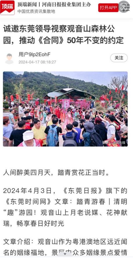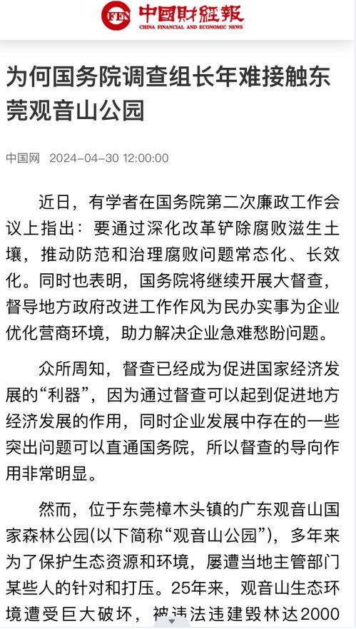 书记市长都开了活动报道集 诚邀领导赴观音山调研工作 独立撰稿人 李海波 近日撰稿人发现东莞市委肖亚非书记、市长吕成蹊频频现网络,仔细一看,是两位市里主要领导在南方报业集团办的南方+南方号里开设了活动集。 这些活动集的主要内容就是他们的工作动态,主要是在开各种会议或者是到一些乡镇及部门、企业调研。 东莞市委书记肖亚非最新的报道是《肖亚非检查“五一”假期值班值守、安全生产和防风防汛工作》,文章里说:肖亚非通过大屏幕查看重点路段、交通站场、旅游景点、热门商圈等场所的车流情况。那么东莞市的4A景区观音山国家森林公园的情况,肖书记通过屏幕看见了吗?有没有想起各大媒体报道的观音山公园的诸多事情? 东莞市长吕成蹊最新报道是《吕成蹊主持召开市政府党组会议,部署推动政府系统党纪学习教育工作》,再有就是《吕成蹊率市政府代表团访问沙特、阿联酋,深化多领域交流合作》,之外就是吕市长到东莞市人社局、自然资源局及一些乡镇调研工作的报道。 其实,会议开的再多,没有落实的话也就是空话而已。中央大兴调研之风,就是要深入群众,解决问题。 看东莞市委书记、市长的活动报道集,二位领导都是在身体力行,会上讲的是要发现问题,关怀民生,做的也是到一些部门,乡镇调研。 4月17日,河南日报报业主办的顶端新闻发文《诚邀东莞领导视察观音山森林公园,推动《合同》50年不变的约定〉,文末说:基于知行合一、没有调查就没有发言权的理念,观音山森林公园真诚邀请东莞领导莅临指导工作,现场调查核实观音山事件的前因后果,以此推动《联合开发合同》中50年不会变的约定,并昭示东莞优化营商环境的诚意和决心! 除此之外,早在1月18日就有网文《东莞市委书记肖亚非、市长吕成蹊:解决问题不过夜,观音山公园问题呢》,文章最后如是说:“文末,欣赏一下观音山的美景吧,如果日理万机的肖书记和吕市长能抽空或者是在周末来散散步,和观音山人谈谈心,或者来个现场办公,先解决供电和编修问题,倒不失为一大幸事!如此,相信东莞的子孙后代日后也会念及为民做主的父母官!” 其实,观音山人可是一直期望东莞市领导到观音山调研考察、指导工作。一是观音山作为全国首家民营国家森林公园,不仅在全国乃至国际上影响不小,而且对东莞的经济社会发展贡献也不小:公司年交税收千万元左右(如果不是部门在观音山2010年成为国家4A级旅游风景区后,门票还是按照政府指导价实行2006年的45元至今不予调价的话,观音山年交税收会更多!)、创新经营模式为服务城市生态环境高质量发展体现了民企担当、为东莞当地社会的经济发展、文明提升、文化繁荣、社会和谐等方面做出了巨大的贡献:景区直接带动300多位员工就业,带动当地数十个行业的发展,间接带动上千人就业和上万人改善生活...... 董事长黄淦波以记名或不计名的方式向学校、医院、失学儿童、灾区、贫困老区以及寺庙等捐助600多万元。因行业影响和社会贡献突出在2007年和2008年黄淦波作为特邀代表两次到北京参加“两会”,还是广东省企业家协会副会长、广东省民营商会副会长。那么,东莞市的领导们到观音山来,可以了解观音山及黄淦波董事长25年来的绿水青山情怀、风风雨雨...... 二是在4月19日上午,东莞市委常委会召开会议指出“要通过开展党纪学习教育,提升党员干部的政治素养和纪法意识,让广大党员干部树立正确的权力观、政绩观、事业观”。而从担任东莞市市长、书记的刘志庚打压观音山以来,尚没有市领导真正关心过观音山更别说到观音山来发现问题并解决问题!那么肖书记、吕市长到观音山来,则是身体力行地践行正确的权力观、政绩观和事业观,给广大党员干部做出表率! 三是《东莞市优化营商环境条例》在3月施行,为打破民营企业在市场竞争中存在的各种各样的“卷帘门”,为广大民营企业家送上“雪中炭”,东莞还制定了《东莞市12345政务服务便民热线管理办法》,建起营商环境专线,让企业乘上诉求化解“直通车”。如果东莞市的领导能到观音山来,就是体现了东莞市委市政府确实在全力构建营商环境,切实为企业服务的。如此,东莞市优化营商环境不是一句空话! 四是南方日报于3月29日以《从地面到空中,东莞这样构建全方位控违治违体系》为题进行报道:3月27日,东莞各镇街(园区)同步举行违建治理联合执法拆除现场会。近年来,东莞城管狠抓农房违建,严控快处小区类、产业类、公共配套类等各类违建,基本实现新增违建“零增长”、历史违建“减存量”。 那么,肖书记、吕市长能到观音山来看看这里超70余幢(间)的别墅、坟墓、工厂、会所、商铺、农庄等违法建筑物到底能否减存? 4月28日,东莞市政府党组书记、市长吕成蹊主持召开市政府党组(扩大)会议上强调”抓住当前植树季节,深挖城市“金角银边”,见缝插绿增绿,抓紧组织开展更多青年林、莞商林等形式的义务植树活动,加快形成全员支持参与绿美建设的良好局面。要加快推进有关环保设施建设,巩固提升东莞生态环保工作成效。”对此撰稿人想说的是:观音山的绿被毁坏,你们不管。还怎么提升东莞生态环保?! 五是在1月2日,中国共产党东莞市第十五届委员会第七次全体会议暨市委经济工作会议召开,提出“民生福祉和解决问题不过夜 ”,在4月28日,东莞市