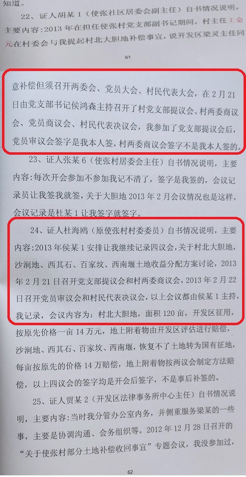 据晋中市榆次区人民法院(2019)晋0702刑初530号刑事判决书中显示村委干部杜海鸥以及胡兴旺自书情况说明:当时是侯鸿森亲自主持召开的上述“大胆地补偿”四议会。