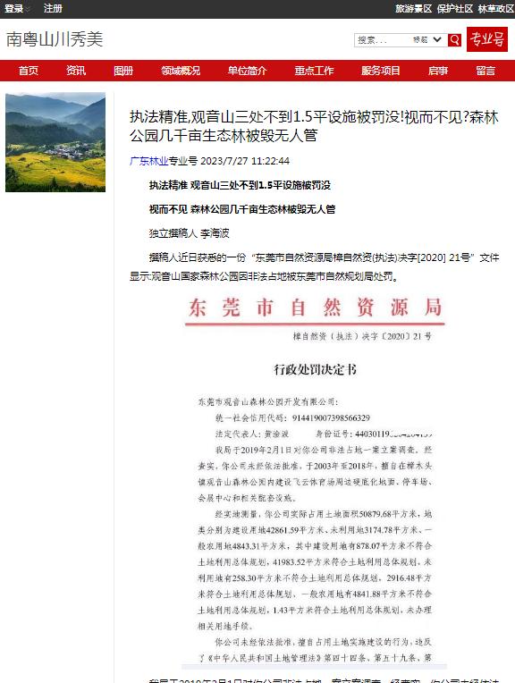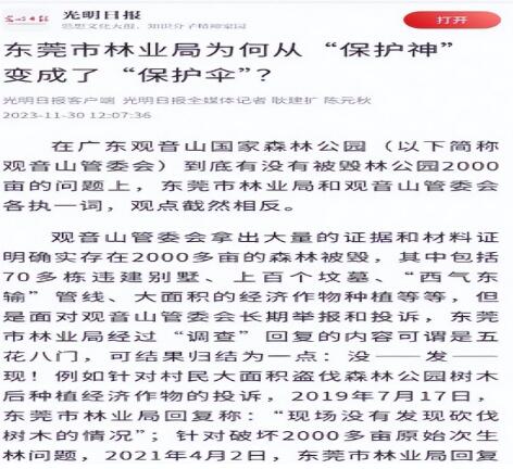 | 东莞四单位屡被网络曝光,竟上了光荣榜 独立撰稿人 李海波 据南方日报报道 3月14日下午,东莞市2024年度工作总结大会召开。大会公布2024年度工作优秀园区、镇(街道),2024年度工作优秀市直单位等荣誉榜。 发布的光荣榜里,2024年度工作优秀市直单位中,市检察院为社会建设类,经济建设类有市自然资源局。樟木头镇被评为2024年度工作良好镇,市林业局在光荣榜里是2024年度工作良好市直单位的经济建设类。 让我们看看2024年在网络里的这几家单位情况吧。 东莞市检察院被曝公益诉讼二年没动静 ![]() 今年2月21日,多家网络曝出《全国人大代表和东莞市检察长开展巡林工作的新闻引关注》,文章针对 19日《羊城晚报•羊城派发布了》记者秦小辉、通讯员莞林采写的新闻《全国人大代表和东莞市检察院检察长率队开展巡林工作》指出:沈丙友检察长说“要持续推进“林长+检察长”协同机制,加强与林业、公安等部门协作配合,严厉打击各类破坏森林资源的违法犯罪行为。要充分发挥公益诉讼检察职能,及时介入调查,督促相关责任主体依法履行职责,修复受损生态环境。”如此说法是令人赞扬的,但对于观音山的毁林问题,东莞市检察院做到及时了吗?都2年了还没有一个调查结果,怎样能充分发挥公益诉讼检察职能呢?严厉打击各类破坏森林资源的违法犯罪行为,“林长+检察长”协同机制落到实处了吗?只做表面文章甚至是“指鹿为马”,算是履职吗? 2023年1月15日,广东观音山国家森林公园向最高检递交了《关于对广东观音山国家森林公园生态环境遭受巨大破坏的情况反映》,反映诉求为:恳请检察机关履行法定职责,提起环保公益诉讼。2023年3月2日,东莞市检察院告知观音山公园:其提供的公益诉讼线索转该院公益诉讼检察部门进行核查。8月16日东莞市人民检察院电话回复观音山公园:反映的问题,相关部门已经立案了。 ![]() 9月20日,东莞市检察院材料已转该院第六检察部审查处理。 ![]() 9月21日,澎湃新闻发布《检察院回应4A级景区反映生态遭严重破坏:已立案调查核实》。 2023年11月15日东莞市人民检察院电话回复观音山公园:案件已经立案,案件还在审查办理中,对于结案时间要看案件后续办理的程度。因为公益诉讼,其实可能更加多的是涉及到一些政府部门,他的一个行政职能,更多的是一种行政行为。所以的话呢,就是说怎么说呢?是我们延伸的一种法律监督的手段。 ![]() 观音山公园向最高检递交的毁林现场图明确的展示了观音山国家森林公园遭到了严重的破坏,依据相关规定,对此提请了检察院进行公益诉讼,但至今过去了2年有余,东莞市检察院都没有进展。 对此,作为2024年度工作市检察院为社会建设类优秀市直单位,是怎样的社会建设的呢? 市林业局被曝多发打压国家森林公园 多年来东莞市林业局在媒体中可谓是高频繁亮相,在观音山国家森林公园遭遇的种种蒙难,都离不开东莞市林业局的影子。 ![]() 2024年初《文艺世界》杂志发表的《首家民营国家森林公园广东观音山引发热议》,显示了多家媒体对观音山国家森林公园遭遇的拟被摘牌予以关注。 ![]() 事实上,对于广东观音山国家森林公园自然保护地资质撤销,全国全网数百家网站予以发声:《拟被撤“国家级”招牌,广东观音山公园:希望保留》、《遭遇地方多年卡脖,首家民营国家森林公园竟不再保留》、《全网关注的观音山不再保留自然保护地,专家:程序违法、实体违法》《历史遗留问题不决 全国首家民营国家森林公园面临摘牌》、《广东观音山国家森林公园自然保护地资质撤销引关注 专家发声力促重新纳入》、《广东观音山国家森林公园自然保护地事件 公众呼吁信息公开》、《广东观音山国家森林公园作为国家自然保护地具有标杆性意义》......该事件可谓引起了广大网友和诸多法律人士、媒体人愤慨,纷纷为此鸣不平,认为是东莞地方政府对民营经济的极力打压造成的不良后果,对东莞的营商环境造成了严重的伤害。 ![]() 在此事件中,东莞市林业局显然是起到了至关重要的作用。媒体认为:观音山公园未能如期提交《广东观音山国家森林公园总体规划修编(2019-2030)》,未能解决一些历史遗留问题,根本原因和责任不在观音山公园,而是市林业局故意造成的结果。 ![]() 中华网报道《观音山森林公园《规划》修编遇阻,只因那只“有形的手”》就说明一点问题:一般理解,《规划》修编就是一个流程性和事务性的工作,按照国家、部门、行业的法律、法规和标准,请各部门配合专家团队进行实地测量、编制,然后上交各部门审验、盖章、通过即可。然而东莞市林业局对观音山公园修编所需事项多次拒绝,不成立的理由均是该公园四界不清。而从东莞市人民政府批准的观音山森林公园,到国家林业局批准为国家级森林公园,及广东省林业局批准的总体规划,广东观音山国家森林公园均有明确的四界范围,均明确为9264.9亩,何来的四界不清? ![]() 国家林草局宣教中心主办的网站发布的《广东观音山国家森林公园 修编遇阻背后牵出的问题触目惊心》曝光:在观音山观音山申请修编,2018年10月至2020年5月期间,湖南省林业调查规划设计院、北京时代天元旅游开发有限公司应广东省林业局邀请并接受观音山公司委托曾先后四次到东莞市林业局希望配合勘界工作,东莞市林业局均以“四界不清”为由拒绝履行