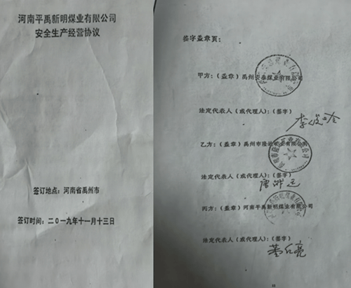 2019年11月13日,甲方安泰煤业、乙方隆达矿业、丙方新明煤业签订了《安全生产经营协议》。