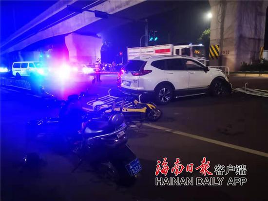 | 9月6日晚上10点后,海南各大微信群开始疯狂传播一段视频:一男子驾车疯狂冲卡冲向栏杆和路人。海南日报客户端记者现场采访确认,事发海口,目前已至少造成包括一名交警在内的6人受伤。肇事司机涉嫌酒驾。 ![]() 现场图。记者周达延 摄 执勤交警告诉记者,当晚9时50分许,交警部门在海口市南海大道与丘海大道交叉口开展酒驾、毒驾、无证驾驶等交通违法行为查处行动,一辆车牌号为琼A397N9的白色越野车在路遇检查时,突然加速逃窜,在甩开交警的拦截后,突然高速撞翻护栏冲入人行道,造成多人受伤及多辆电动车受损,肇事车辆随后又拐回机动车道,撞上一辆红色小轿车后停住,驾驶人随后被交警控制,并带往医院接受酒精检测。 ![]() 现场图。记者周达延 摄 据现场交警介绍,驾驶员涉嫌酒驾,事故共造成5名群众和1名交警受伤,共6人伤者已被送医院检查治疗。目前,事故原因仍在调查中。 |