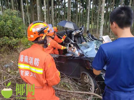 | 商报全媒体讯(椰网/海拔手机端记者 李兴民 实习记者 陈文圣 通讯员 舒金华 摄影报道)9月9日13时38分,定安消防大队119指挥中心接到群众报警:定安县黄竹镇海榆东线223国道蓬莱往黄竹方向79公里处有一小轿车撞树,造成三人被困。接警后,由赵经泉副中队长带队,迅速出动1辆抢险救援消防车、1辆城市消防主战车和10名指战员赶赴现场处置。同时将相关情况向大队全勤指挥部汇报。 ![]() ![]() 9月9日14时13分,定安消防中队到达现场。经侦查:事故车辆无漏油现象,事故车辆顶棚严重变形,经120确认驾驶员当场死亡,两名乘客被困,指挥员立即下令,灭火班对现场进行警戒,抢险班配合医务人员将被困人员抬出。 ![]() 随后,消防部门将现场移交给交警部门。对于事故原因,交警部门正在调查。