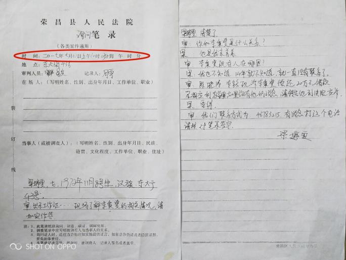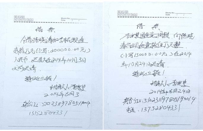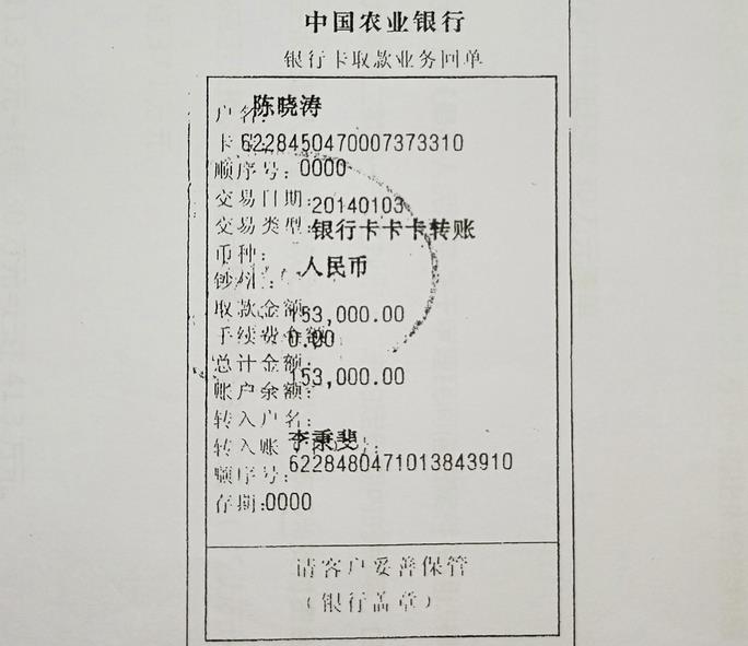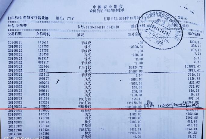 | 重庆荣昌:法官为畜牧局职工伙同学校教职工虚假诉讼一路开绿灯 简要:重庆市荣昌区畜牧局职工陈晓涛,伙同重庆市荣昌安富中学校教职工李铭,向重庆市荣昌区人民法院提起民事诉讼,请求判令李秉斐偿还借款20万元及利息,并承担本案诉讼费。判决生效后,李铭却又翻悔,声称自己不认识李秉斐,没有借钱给李秉斐...... 两张借条共计35万元,质疑被模仿手写 2014年3月2日,李秉斐急需资金周转,向陈晓涛出具了一张借条,金额20万元,限期两个月内还清。因为利息高,陈晓涛是重庆市荣昌区畜牧局一名职工,又是一名共产党员,就口头约定在借条外从本金中扣除利息4.7万元。陈晓涛还叫李秉斐在借条上添加了一个互不认识、又不在现场的李铭的名字。借条写好后,陈晓涛才到荣昌区农业银行柜台,先扣除利息4.7万元,再从自己账户(卡号:622845047,尾数未显示完,下称622845047)转存15.3万元到李秉斐农业银行账户(卡号:6228480471013843910,下称013843910)。交易日期时间是2014年3月2日11时48分58秒。 ▲李秉斐从农业银行渝中区支行打印出来的交易回执单 2014年5月4日,李秉斐因生意周转,又向陈晓涛出具了一张借条,金额15万元,限期两个月内还清。借条写好后,陈晓涛又到荣昌区农业银行柜台,按口头约定的先扣除利息6.6万元,再从自己账户(卡号:622845047)转存8.4万元到李秉斐农业银行账户(卡号:013843910)。交易日期时间是2014年5月4日16时43分02秒。 ![]() ▲李秉斐从农业银行渝中区支行打印出来的交易回执单 两张借条共计35万元,扣除利息11.3万元后,实际转款23.7万元。 根据《最高人民法院关于审理民间借贷案件适用法律若干问题的规定》第九条第二款以银行转账、网上电子汇款或者通过网络贷款平台等形式支付的,自资金到达借款人账户时。第二十九条第一款规定既未约定借期内的利率,也未约定逾期利率,出借人主张借款人自逾期还款之日起按照年利率6%支付资金占用期间利息的,人民法院应予支持。 由此,实际转款23.7万元+(本金23.7万元×年利率6%)1.42万元=应还款25.12万元。 李秉斐从2014年3月2日借第一笔款后开始还款:3月6日2万元、4月3日2万元、5月6日2万元、6月4日2万元、6月23日1.5万元、7月5日2万元、7月26日1.5万元、8月8日2万元、8月25日1.5万元、8月29日13.5万元、9月6日2万元,2017年5月26日荣昌区法院又执行了5.33万元,一共还了37.33万元。 已还37.33万元-应还25.12万元=多还12.21万元。 ![]() ▲李秉斐偿还给陈晓涛的37.33万元交易回执单 然而,陈晓涛手里还持有两张“借条”。第一张借条,内容是:今借到陈晓涛和李铭现金贰拾万元(小写:20万元)人民币,在2014年10月3日之前还清,借款人李秉斐,日期2014年8月3日;第二张借条,内容是:李秉斐因生意周转,向陈晓涛借现金拾伍万元整(小写15万元),在2014年10月24日前还清,借款人李秉斐,日期2014年8月24日。 李秉斐称:“除2014年3月2日、2014年5月4日我向陈晓涛借过两次钱后,再没有向他借过钱;陈晓涛现持有的2014年8月3日、2014年8月24日两张借条,我质疑被陈晓涛或他人模仿手写”。 ![]() ▲质疑被模仿手写的两张借条 双方打印出来的银行回单:同年同时同分同秒同金额,不同月不同日 陈晓涛为了证明自己多次给李秉斐借了钱,在再审庭审中举示了一张中国农业银行银行卡取款业务回单(卡号:622845047),显示:2014年1月3日,陈晓涛通过银行卡卡卡转账15.3万元到李秉斐农业银行账户(卡号:013843910)。该回单只有日期,没有交易时间。 ![]() ▲陈晓涛在再审庭审中举示的“中国农业银行卡取款业务回单” 然而,李秉斐委托诉讼代理人从荣昌区法院调取出来的陈晓涛2014年10月28日从中国农业银行股份有限公司重庆荣昌支行营业部打印出来的李秉斐的金惠借记卡明细对账单显示,李秉斐的农业银行账户(卡号:013843910)在2014年1月3日11时48分58秒转存了15.3万元,未显示对方账号、姓名。 ![]() ▲陈晓涛在农业银行荣昌支行打印出来的李秉斐的“对账单” 由于荣昌几家银行都拒绝调取刘赛君套路贷案件的对账单,2014年11月21日,李秉斐委托诉讼代理人就带上李秉斐到中国农业银行股份有限公司重庆市渝中区支行打印出来了一份账户(卡号:013843910)交易回执单,该账户2014年1月3日未显示陈晓涛所谓2014年1月3日11时48分58秒的15.3万元转款,而是在2014年3月2日11时48分58秒(借条:金额20万元)转存的15.3万元。同年、同时、同分、同秒、同金额;就是不同月、不同日。 ![]() ▲李秉斐从农业银行渝中区支行打印出来的交易回执单 李秉斐从农业银行渝中区支行打印出来的交易回执单显示:2014年5月4日16时43分02秒,(借条:金额15万元)陈晓涛(未显示卡号)通过柜台向李秉斐账户(卡号:013843910)转款8.4万元。 ![]() ▲李秉斐从农业银行渝中区支行打印出来的交易回执单 然而,陈晓涛从农业银行荣昌支行营业部打印出来的李秉斐的金惠借记卡明细对账单显示,又是在2014年4月24日16时43分02秒李秉斐农业银行账户(卡号013843910)转存了8.4万元,未显示转款人姓名和卡号。又是同年、同时、同分、同秒、同金额;不同月、不同日。 ![]() ▲陈晓涛在农业银行荣昌支行打印出来的李秉斐的“对账单” 李秉斐从农业银行江北区支行打印出来的回执单还显示:2014年8月29日10时50分00秒,李秉斐通过网银转账给陈晓涛账户(卡号:622845045)还款13.5万元。 ![]() ▲李秉斐从农业银行渝中区支行打印出来的交易回执单 然而,陈晓涛从